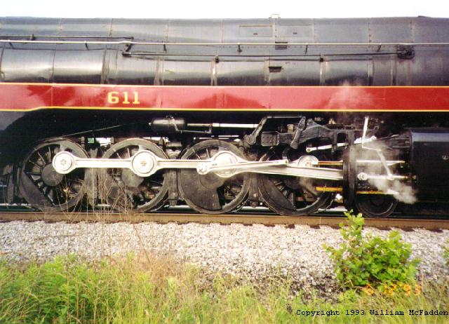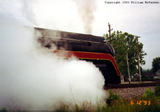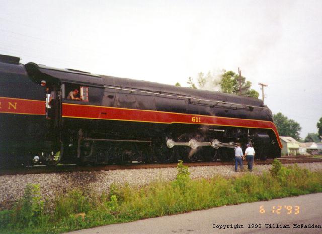 I was fortunate enough to be able to capture N&W #611 as it passed through Ironton, Ohio, in June of 1993 pulling a steam excursion. I chased it from Ironton on into Portsmouth, Ohio. About a year after this excursion, Norfolk Southern pulled the plug on steam excursions. |