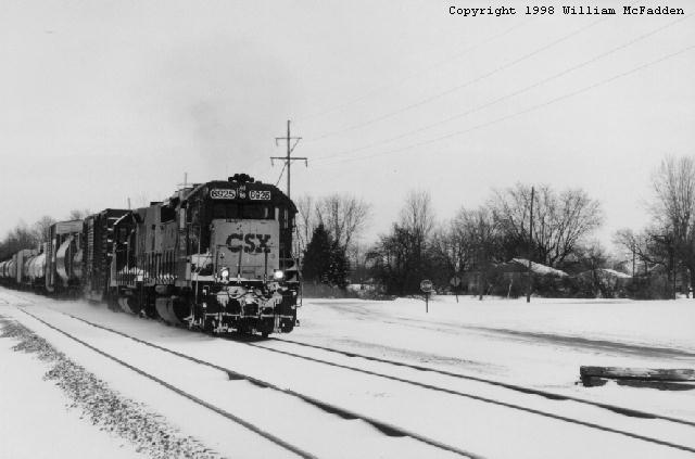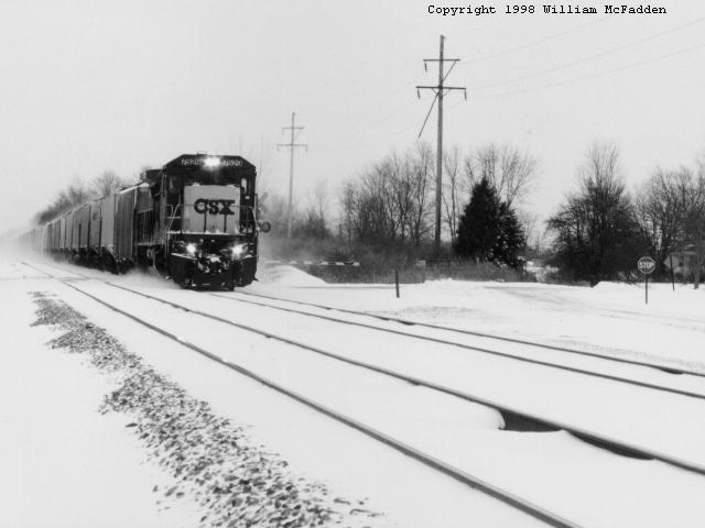CSX, NS, and what used to be Conrail all pass through the central Ohio town of Delaware, Ohio. CSX and NS run from Columbus through Delaware to Marion, Ohio. While these roads run mostly north and south on a map, the railroads call the Columbus to Marion direction "west". The single-track CSX mainline runs through the west side of Delaware, roughly parallel to US 23. A dramatic view of the trains can be found at Blue Limestone Park, a former limestone quarry, where the railroad passes along the edge of the quarry, about fifty feet higher than the park grounds. A five-mile two-track passing siding exists between Pennsylvania Avenue (at CSX MP 25.15) and the Radnor Elevator in Radnor, Ohio (at CSX MP 30.72). Both ends of the passing section are easily accessed by automobile. Eastbound CSX trains stop just short of the Pennsylvania Avenue grade crossing. Westbound CSX trains stop just shy of the Radnor Road grade crossing in Radnor. A good viewing location is the Hillsmiller/Troy Road grade crossing. Signals for both directions are visible from this location, and there's often a pile of ballast there which can be climbed to gain height. The CSX defect detector is located at CSX MP 38.7. The tracks pass the remains of a small yard at the north end of Park Avenue. The C&O station used to be located here. The single-track NS mainline runs through the east side of Delaware, crossing US 23 just north of town on a steel bridge. A passing siding exists between just north of Coover Road and Radnor Road. Unfortunately, the Coover Road end of this siding is not accessible by automobile. A good viewing location is the Penry Road grade crossing. Westbound NS trains often stop just shy of Penry Road. The former-Conrail mainline passes to the east of Delaware and is now part of CSX. Switches at Curve Road in the south and near Harris Road in the north allow a section of track to pass through Delaware at US 42. This section, which passes the former "Big Four" station, was for many years the mainline route until the bypass was built. Columbus-bound trains often stop just short of the Curve Road crossing. To get to Curve Road, turn south off of US36/37 east of Delaware onto Sweeney Road and continue to the "T". (I have not been to the Harris Road switch.) Conrail maintains an industrial spur through town that still sees some activity.