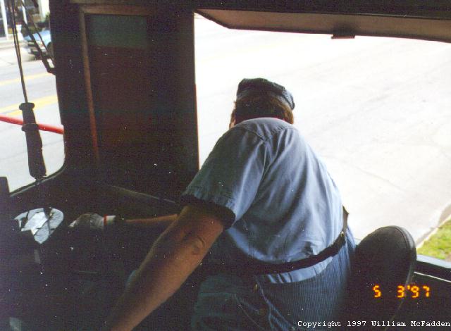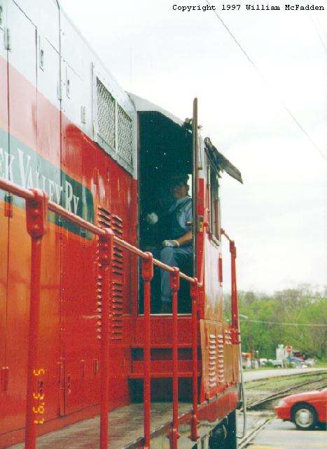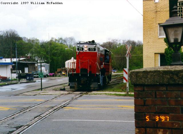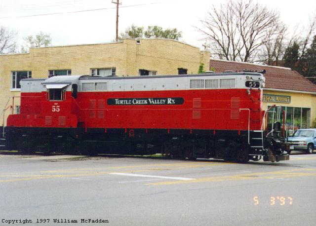 My wife and I visited the TCVRy in early May. The weather was cold and started out raining. Fortunately, by the time we boarded, the rains had stopped. I have to say that the visit was great fun and the TCVRy is one well-done show! The equipment and facilities were top-notch, and the staff were extremely friendly and courteous. We arrived about an hour early so I could explore and photograph. The locomotive was not yet at the depot, so we were able to watch the locomotive back up to the waiting train. Once the locomotive was coupled to the train, engineer Bob Zoellner invited my wife and me to the cab. (This invitation was unsolicited!) He explained that locomotive #55 is a GP-7, built by General Motors Electromotive Division in 1950. It was number four of the second run by EMD. The locomotive has a "567" prime mover, which has sixteen cylinders, each displacing 567 cubic inches, and is not turbocharged. Engineer Zoellner also explained each of the controls to us, allowing us to sit in the engineer's seat, and even let me perform the brake test. He also opened the engine doors to allow us to see the prime mover and generator. At boarding time, conductor Tim O'Neill helped us board the coach. Once underway and all tickets had been punched, we were allowed to walk around, to visit the first-coach snack bar, and to go out to the open gondala. Conductor O'Neill kept himself available at all times during the trip, cheerfully pointing out historical artifacts such as the offset-truss bridge across the Turtle Creek and the concrete pads for "milk runs" of yore, and volunteered information about other Cincinnati railfan "hot spots". As is customary with tourist shortline railroads, track speed didn't exceed 15mph. However, the sound of the venerable locomotive was delightful as the GP-7 effortlessly pulled the train along. At the half-way point, the train stopped, and the fireman proceeded to the back of the last coach, which has been outfitted with an air horn and a locomotive headlight. The train then backed back to the depot. The full ride took just over an hour. Upon our return to the depot, we discovered a gift shop within. The gift shop has typical railfan items, some with the TCVRy logo and some items of general interest to the railfan. They also have copies of the Ohio Rail Map, which they give away, free. Until recently the TCVRy was known as the Indiana & Ohio Scenic Railroad. It still maintains a relationship with the I&O. Despite the weather, the three hours my wife and I spent at the Turtle Creek Valley Railway were very enjoyable, and I look forward to visiting again. The TCVRy, the I&O, and Lebanon are to be commended for job well done!
