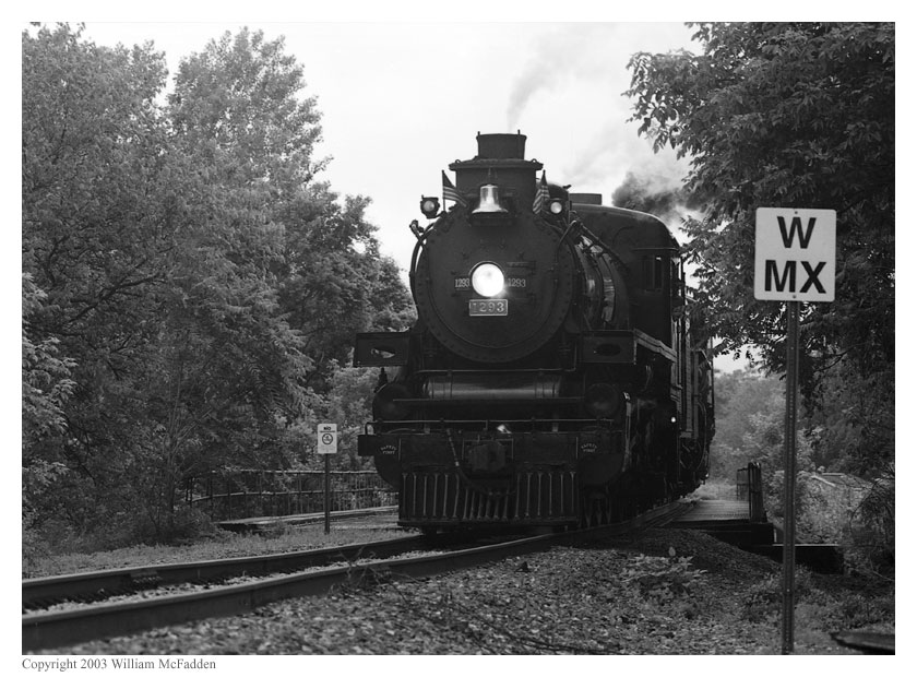 - Steam locomotive 4-6-2 #1293 between Sugarcreek and Morgan Run, Ohio, on October 13, 2002.