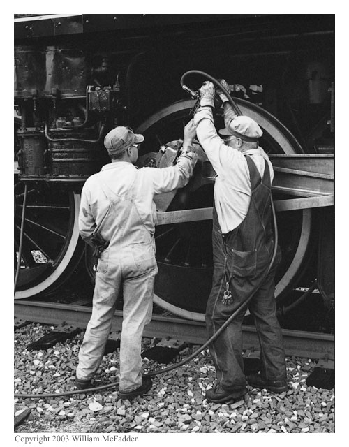 - Jason Johnson and Grant Geist lubricate the rods on #1293 in Newark, Ohio, on May 31, 2003.