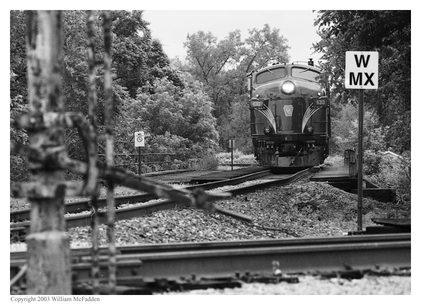 - F-7A locomotive #6307 between Sugarcreek and Morgan Run, Ohio, on October 13, 2002.