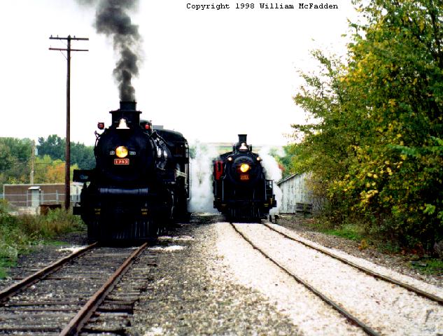 On October 13, 2002 we chased a double-head steam train out of Sugarcreek to the engine shops at