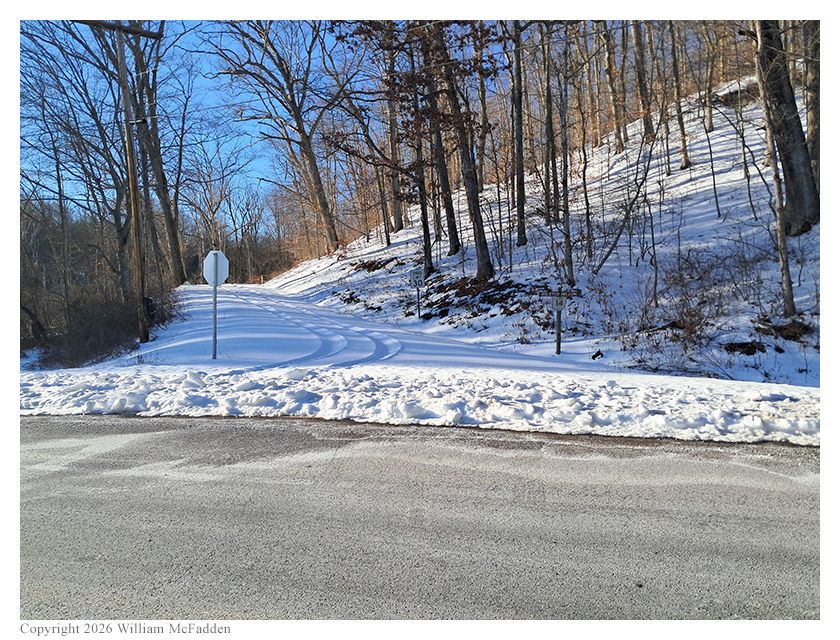 Following station tear-down, Eric thought to drive to nearby Turkey Ridge Wildlife Area (US-9509) to see if cell-signal was now available there. However, upon arriving at Bolster Hollow Road, the access road into the wildlife area, he found that ODNR hadn't plowed that road. (It appeared that ODNR had failed to plow any of the other forestry roads in Turkey Ridge Wildlife Area or Zaleski State Forest.) Even though the car Eric was driving was equipped with all-wheel drive and Blizzak snow tires, Eric was fairly certain it wouldn't have been up to the task of negotiating the 6" or more of snow on the unplowed road, so another trip will be required to determine if cell-signal is available.