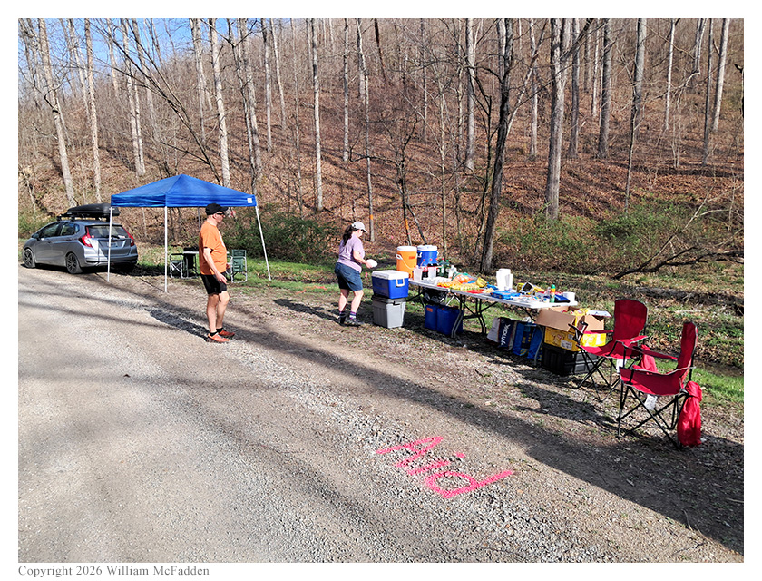 After providing communications-support to the Iron Furnace Trail Runs (info) at the King Hollow Aid Station, Eric joined Andy McDonald, K8FO, at his location near the finish of the half-marathon to perform the two-fer activation.