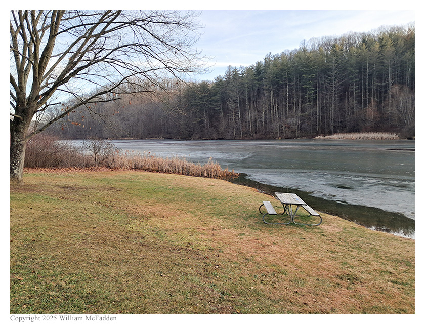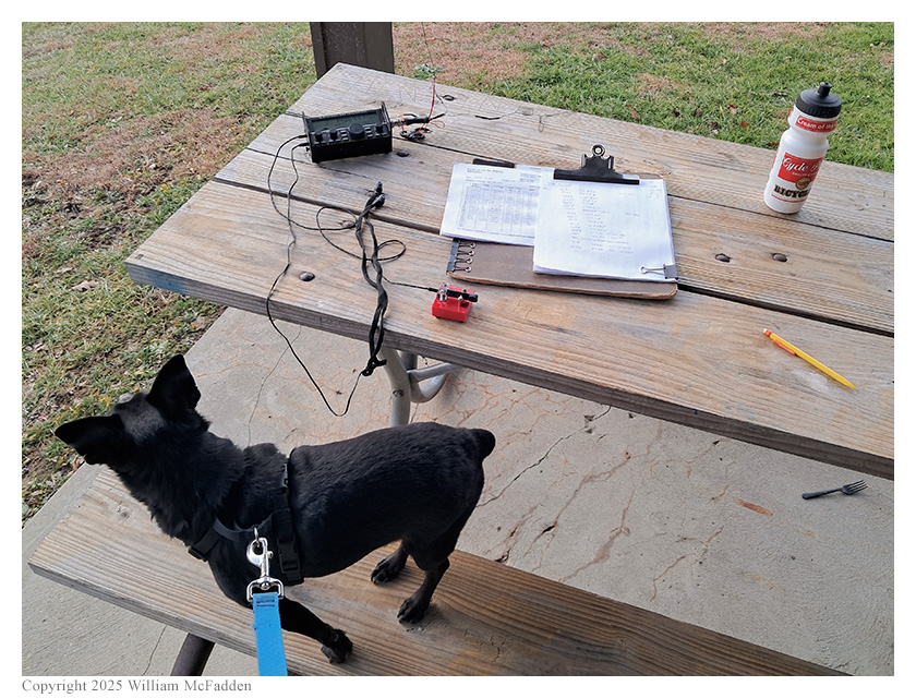 On this 58° Christmas Eve afternoon, Eric McFadden, WD8RIF, had hoped to perform a bicycle-portable activation of Strouds Run State Park but family activities combined with a lingering general lack of energy from a recent COVID-19 immunization, caused him to give up on the idea of bicycling and, instead, drove to Bulldog Shelther within the park for his activation. Eric was accompanied by little dog Theo.