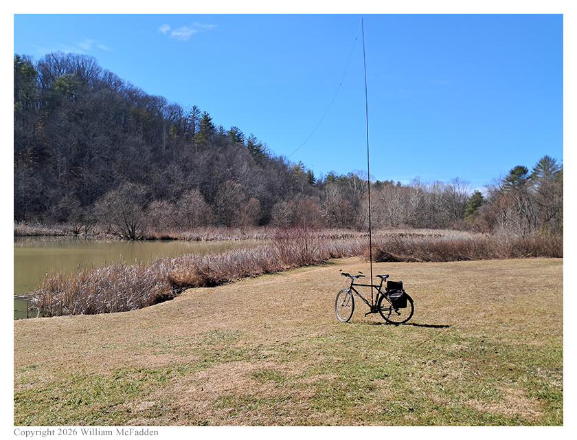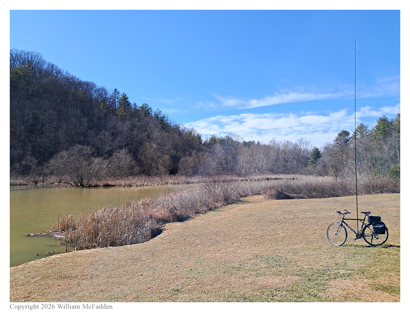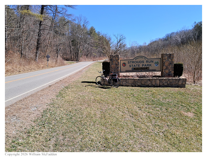 Taking advantage of a warm late-February afternoon, Eric McFadden, WD8RIF, did both a bicycle ride and a POTA activation of Strouds Run State park, bicycling from his work-office's parking lot to Bulldog Shelter within the state park.