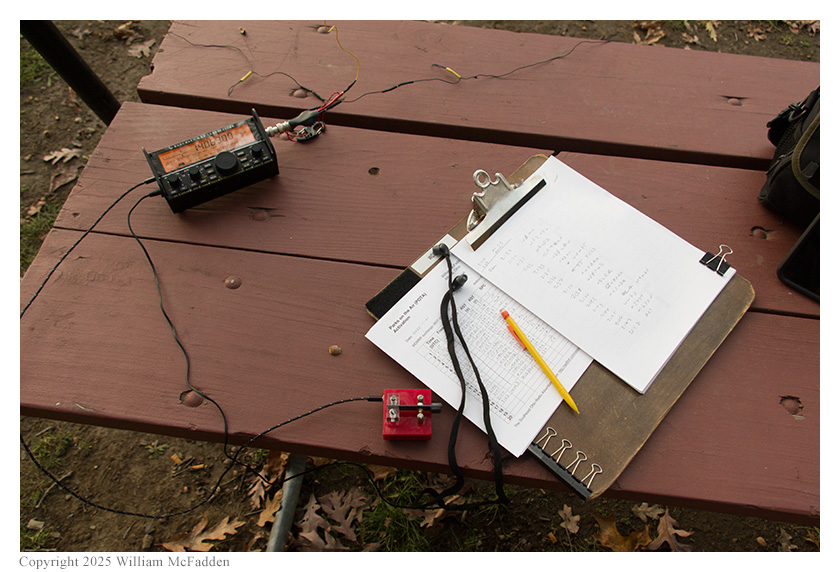 Because darkness was rapidly falling, and they wanted to visit one more park before finding their hotel, Eric finished his operation with seventeen QSOs in about twenty minutes of on-air time. All of Eric's QSOs were CW and were made at five watts of output.