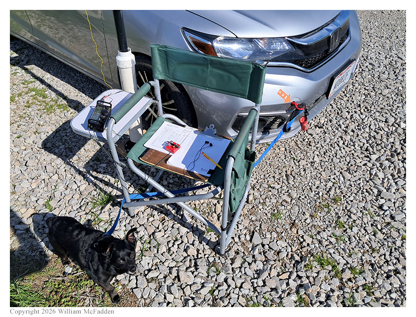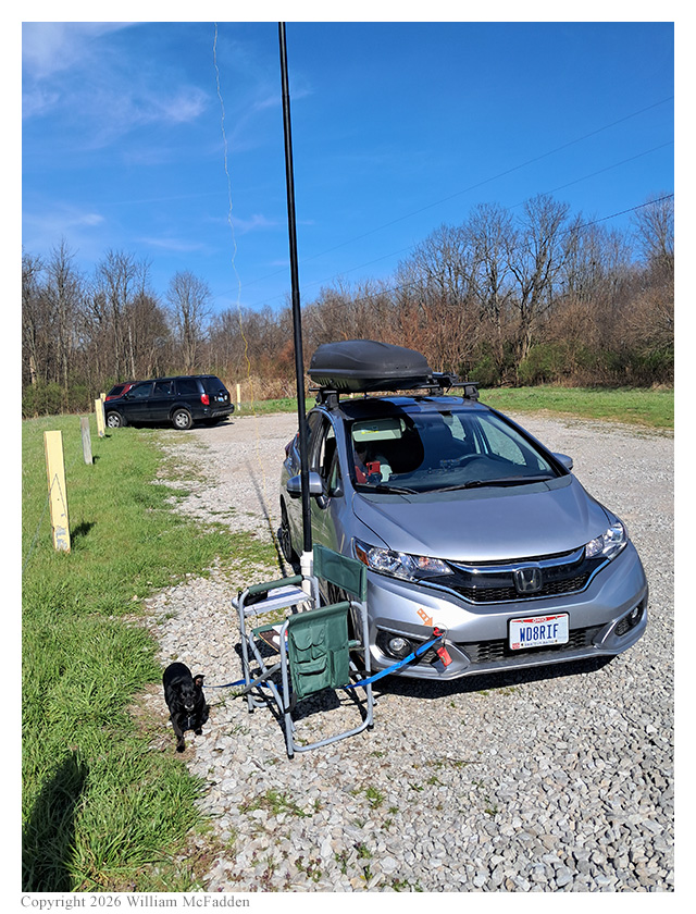 While driving to Georgetown, Kentucky, for a family funeral, and following a successful activation of Quiet Trails State Nature Preserve, Eric McFadden, WD8RIF, stopped at the wildlife management area to perform the activation. Eric was accompanied by his wife, Vickie, and their small dog, Theo.