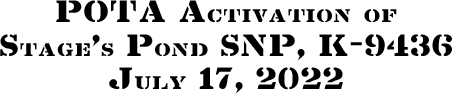 On Sunday, July 17, 2022, for the Parks on the Air program (POTA; link) Support Your Parks Summer 2022 Plaque Event,