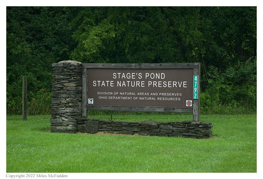Stage's Pond State Nature Preserve, dedicated August 23, 1974, is nature's own monument to the great ice fields which once covered most of Ohio 17,000 years ago. Today, some 30 acres of this 64-acre depression lie under water with two adjacent marshy low areas in the central and southern parts of the depression. These areas, coupled with adjacent field and woodland areas, offer an opportunity to explore a number of habitats, each with its own unique array of species.
