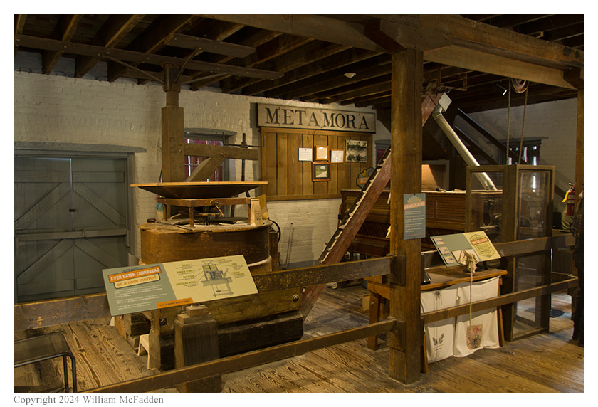 Metamora is an example of the kind of towns that grew along the canal routes in Indiana. Stationed every few miles, these towns provided a source of fresh horses, food and lodging for travelers and a place for farmers and others to buy and sell their goods along the canal route. Commerce was so heavy that the White Water Valley Canal Company, established in 1842, had their own bank and printed their own currency at their headquarters in Connersville!